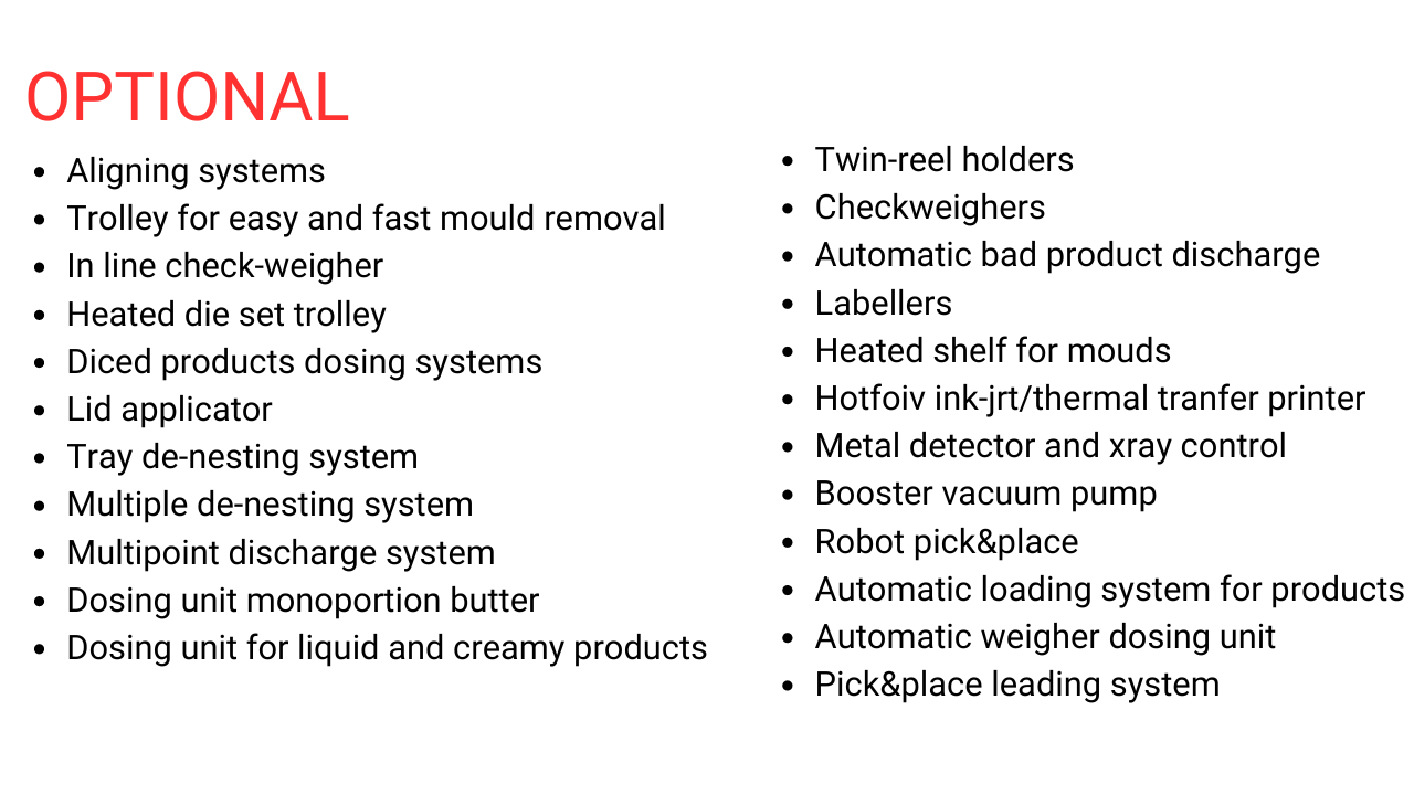 The fully automatic cup thermosealing line mod. TDF 1500 is a unique solution that combines automatic tray loading, product feeding, data printing, and aroma-saving lid applicator with a compact design. On top of that, the multi-cavity chain advancing movement allows this machine to reach higher production capacity