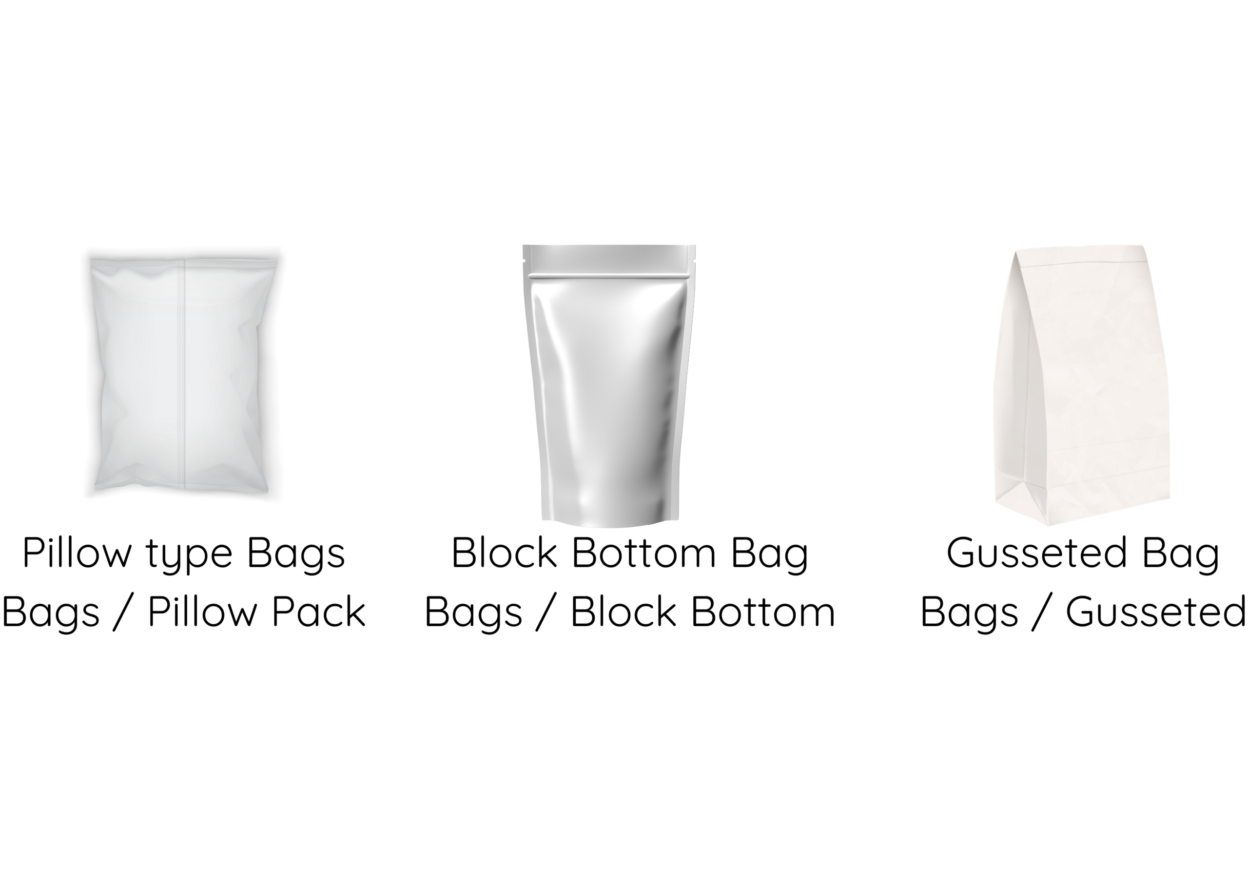 This machine alternates between 5 distinct bag formats: pillow pack, doypack, block bottom pack, quad seam pack and envelope,