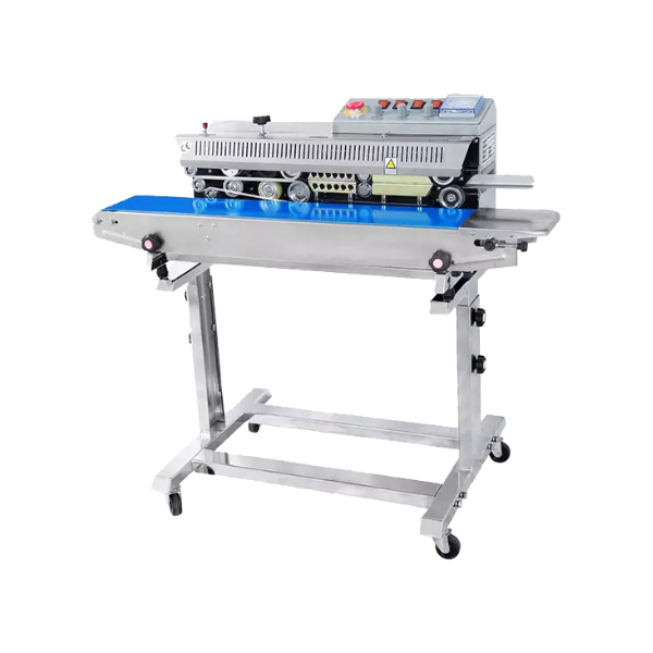 Η θερμοκολλητική μηχανήΤο μηχάνημα λειτουργεί με κωδικοποιητή στερεάς μελάνης για την εκτύπωση των έγχρωμων ετικετών κατά τη σφράγιση. Ο κωδικοποιητής είναι σε θέση να εκτυπώνει σε υψηλή ταχύτητα με στιγμιαία στεγνότητα και ευανάγνωστα γράμματα που έχουν καλή ιδιότητα πρόσφυσης. Επιλέγονται διάφορα χρώματα. Ο τροχός εκτύπωσης στο μηχάνημα μπορεί να χρησιμοποιηθεί τόσο για διάταξη R όσο και για διάταξη Τ τύπων. Για τύπους σε διάταξη R, το μηχάνημα μπορεί να εκτυπώσει δύο γραμμές σε μέγεθος γραμματοσειράς δύο (18PT) ή τρεις γραμμές σε μέγεθος γραμματοσειράς πέντε (10,5PT). Η συσκευή μέτρησης είναι προαιρετική.