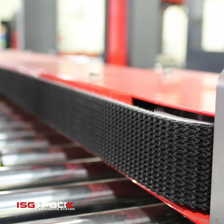 Μετά την ταινιοκόλληση, το κιβώτιο οδηγείται αυτόματα στη μονάδα τσερκοδέτησης, όπου εφαρμόζονται μία ή δύο παράλληλες ταινίες PP, εξασφαλίζοντας άριστη ευθυγράμμιση πτερυγίων και υψηλή ποιότητα σφράγισης.