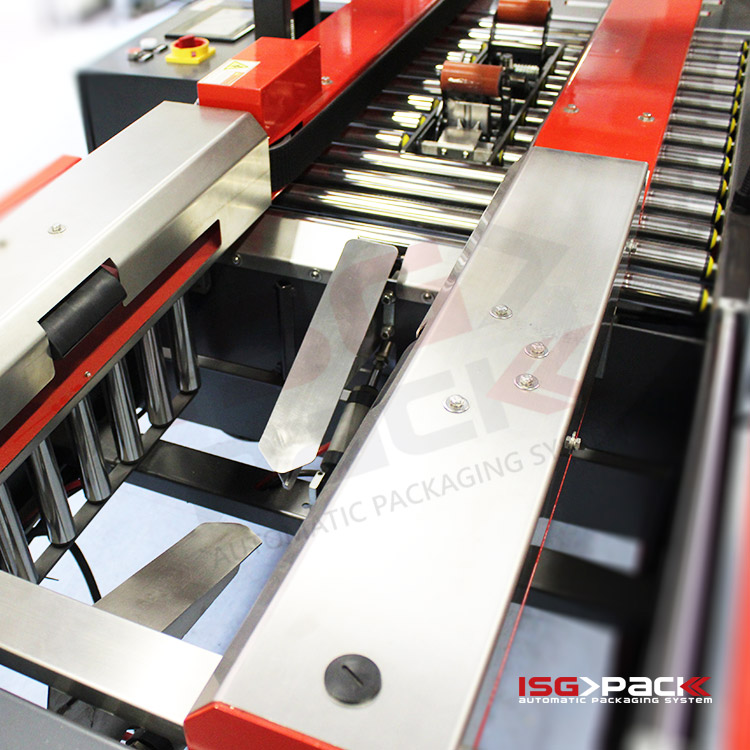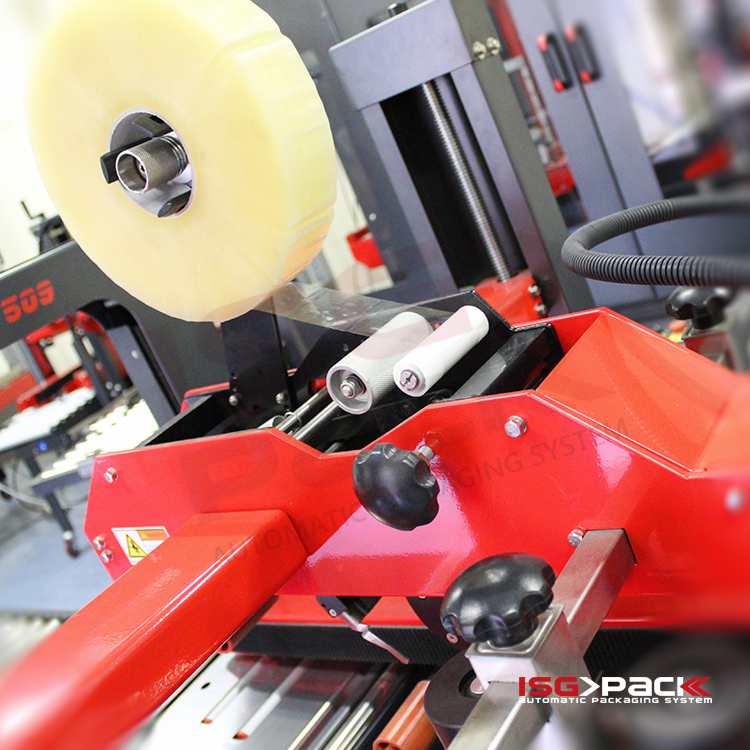 Αποτελείται από μονάδα διαμόρφωσης με κύλινδρο ώθησης, σύστημα κλεισίματος πτερυγίων, κεφαλές ταινιοκόλλησης και ενσωματωμένη τσερκοδετική μηχανή. Διαθέτει δύο μηχανοκίνητους πλευρικούς ιμάντες για ομαλή μεταφορά διαφορετικών διαστάσεων κιβωτίων και φωτοκύτταρα για την ανίχνευση του προϊόντος και τη ρύθμιση της απόστασης των δεσιμάτων.