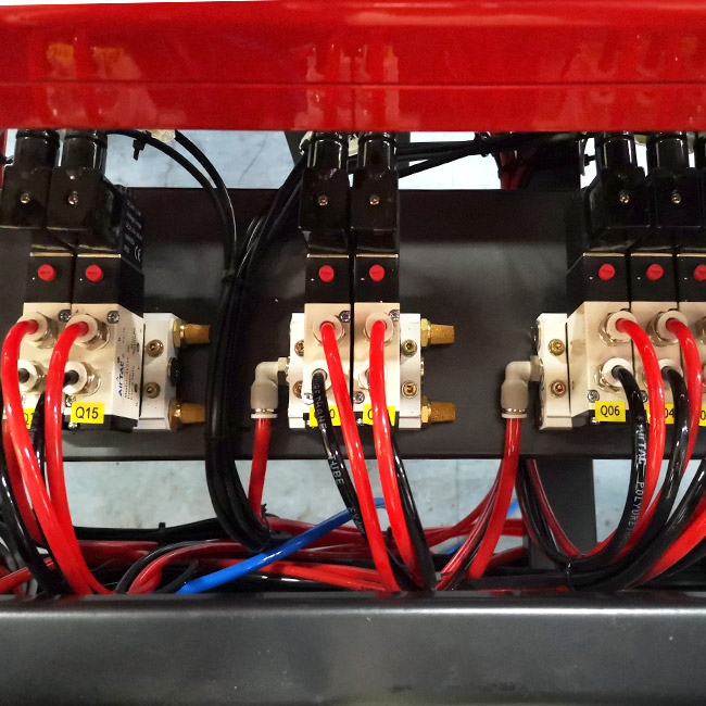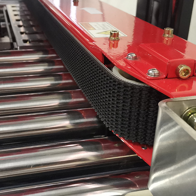 Η μηχανή διαθέτει πλευρικούς κινητήριους ιμάντες, έλεγχο μέσω PLC και οθόνη αφής για πλήρη διαχείριση λειτουργιών.