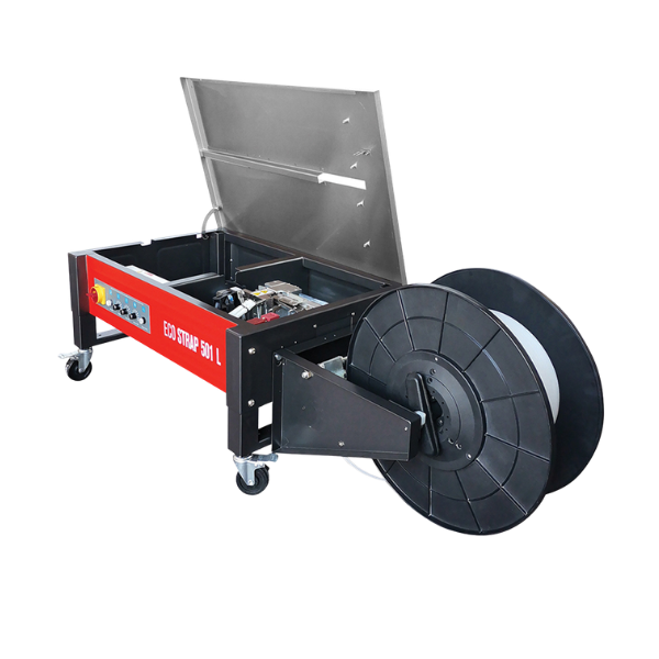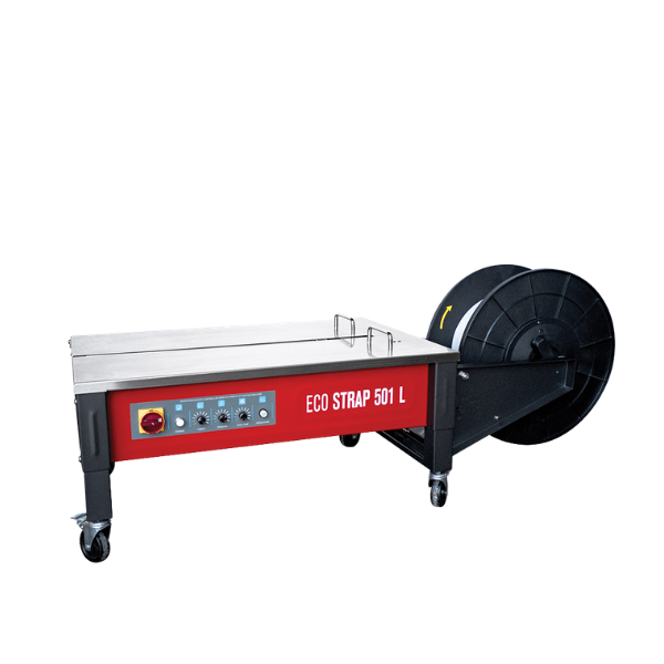 Η ECO STRAP 501L είναι ημιαυτόματη τσερκοδετική μηχανή χαμηλού πάγκου, νέας γενιάς, σχεδιασμένη ειδικά για μεγάλα και βαριά κιβώτια. Διαθέτει κινητήρες συνεχούς ρεύματος (DC motors) για κάθε λειτουργία και σύστημα θερμικής συγκόλλησης της ταινίας, εξασφαλίζοντας αξιόπιστο και σταθερό δέσιμο.